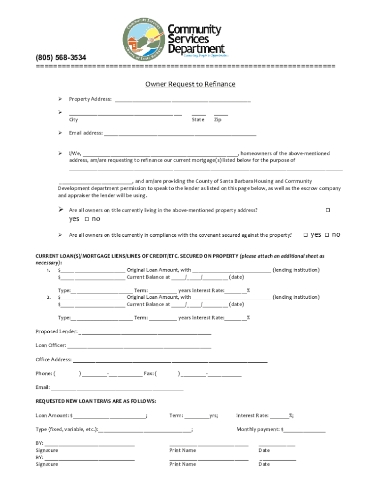 Get the free Owner Request to Refinance Template