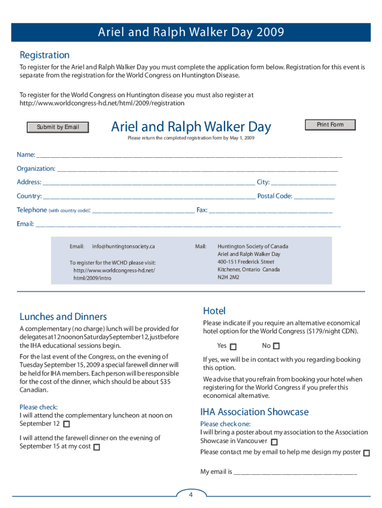 Ariel and Ralph Walker Day The International Huntington Association In collaboration with The Huntington Society of Canada invites you to participate in the Ariel and Ralph Walker Day before the World