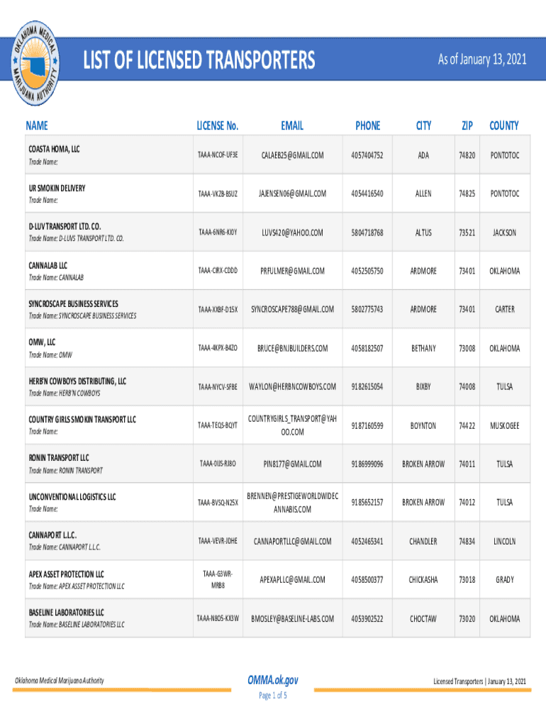 Gather all the necessary information about the licensed transporters such as their names, contact details, and license numbers.