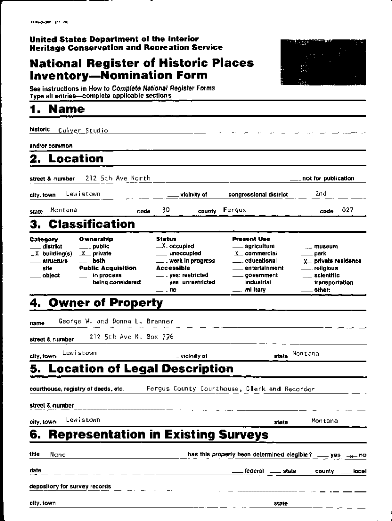 FHR8300(1178)United States Department of the Interior Heritage Conservation and Recreation ServiceNational Register of Historic Places InventoryNomination Form See instructions in How to Complete