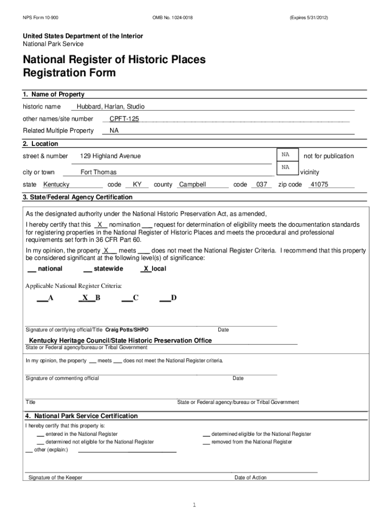 NPS Form 10900OMB No. 10240018(Expires 5/31/2012)United States Department of the Interior National Park ServiceNational Register of Historic Places Registration Form 1. Name of Property historic name