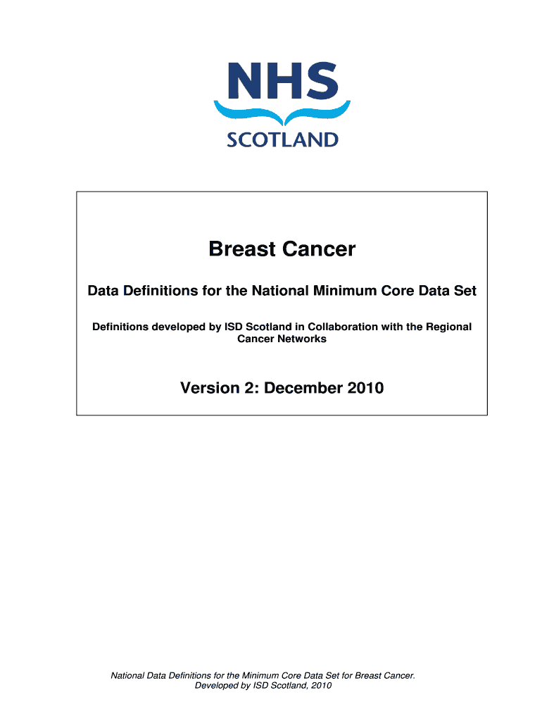 Breast Cancer Data Definitions for the National Minimum Core Data Set Definitions developed by ISD Scotland in Collaboration with the Regional Cancer Networks Version 2: December 2010 National Data