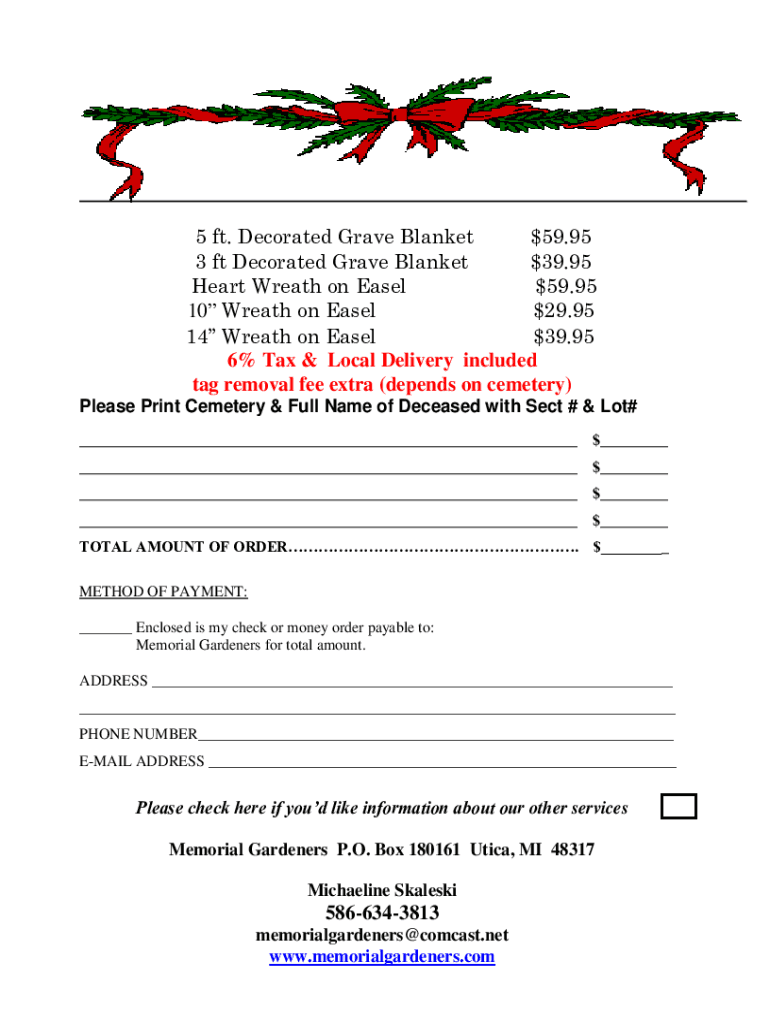 Get the free ORDER FORM FOR WINTER GRAVE BLANKET