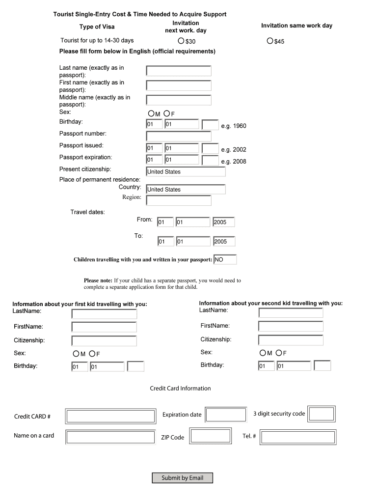 Get the free Tourist Visa Application Form