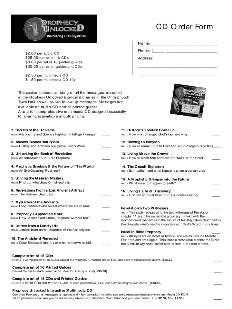 CD Order Form Name: Phone: () $2.00 per audio CD $25.00 per set of 16 CDs $8.00 per set of 16 printed guides $30.00 per set of guides and Misaddress: $2.50 per multimedia CD $1.50 per multimedia CD