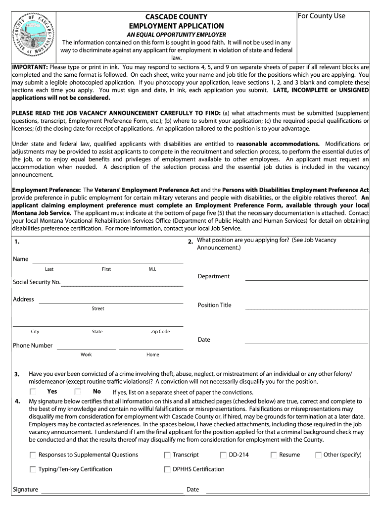 Get the free Cascade County Employment Application