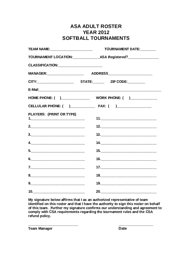 The ASA FAST PITCH is a writable document that should be submitted to the relevant address in order to provide some info. It needs to be filled-out and signed, which may be done manually in hard copy, or by using a particular software like PDFfiller. It allows to complete any PDF or Word document right in the web, customize it according to your requirements and put a legally-binding electronic signature. Once after completion, user can easily send the ASA FAST PITCH to the relevant person, or multiple ones via email or fax. The template is printable as well thanks to PDFfiller feature and options presented for printing out adjustment. In both digital and in hard copy, your form should have a clean and professional look. It's also possible to save it as the template for later, there's no need to create a new blank form over and over. You need just to amend the ready document.