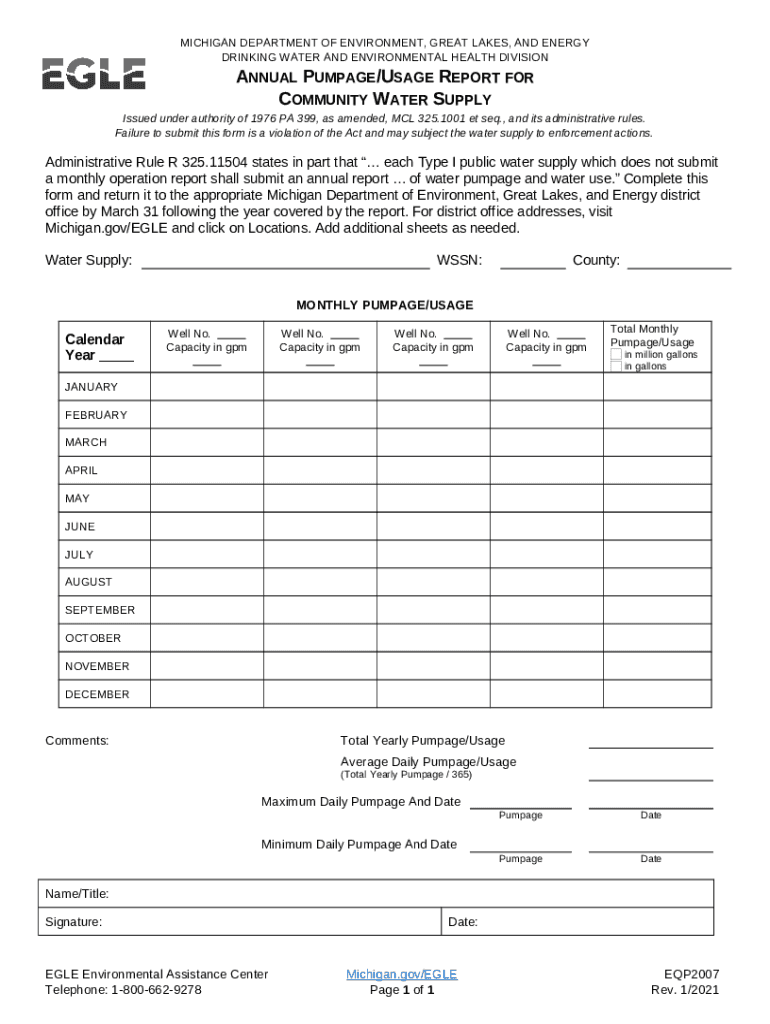 Annual Pumpage/Usage Report - Michigan word template: frequently asked questions
