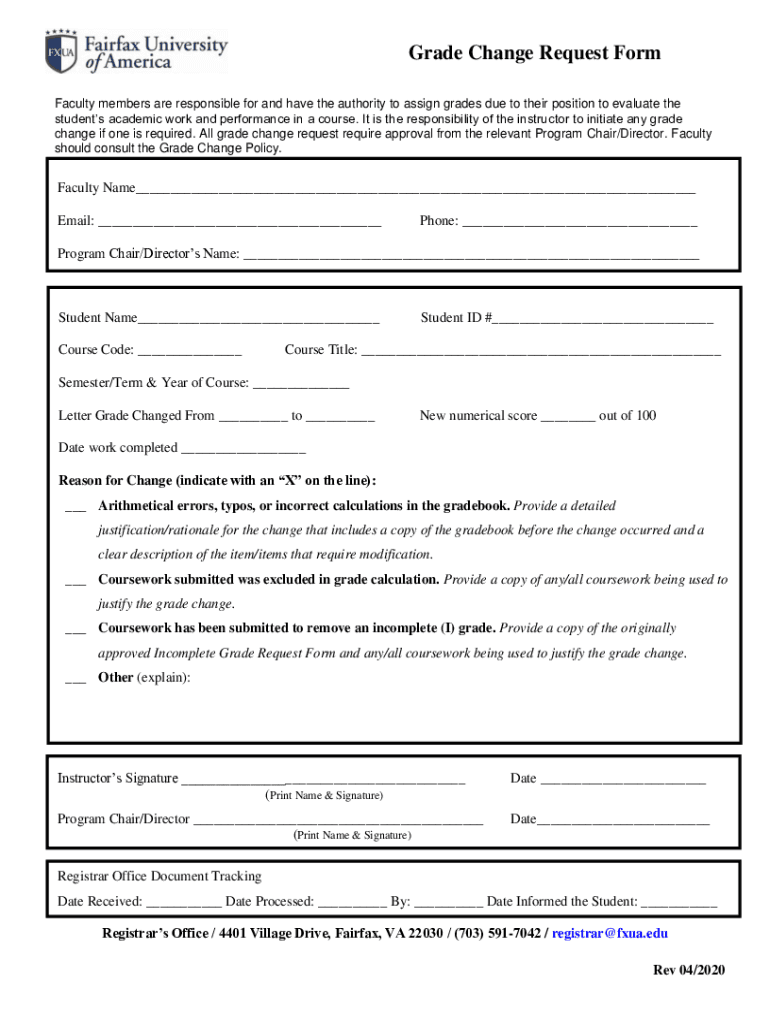 Grade Change Request Form Faculty members are responsible for and have the authority to assign grades due to their position to evaluate the students academic work and performance in a course. It is