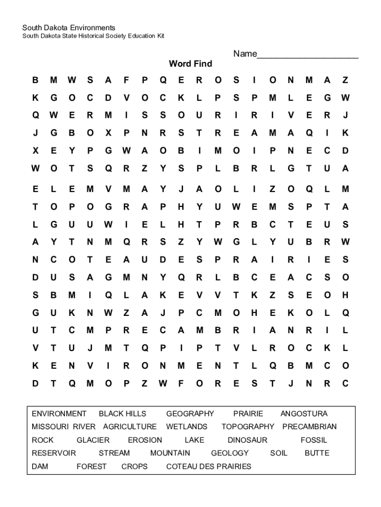 South Dakota Environments South Dakota State Historical Society Education Misname Word Find BMWSAFPQEROSIONMAZKGOCDVOCKLPSPMLEGWQWERMISSOURIRIVERJJGBOXPNRSTREAMAQIKXEYPGWAOBIMOIPNECDWOTSQRZYSPLBRLGTUAELEMVMAYJAOLIZOQLMTOPOGRAPHYUWEMSPTALGUUWIE