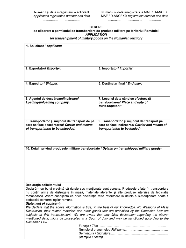 Numeral i data nregistrrii la solicit ant Applicants' registration number and date Numeral i data nregistrrii la MAE / DANCE MAE / Dancers registration number and date SEVERE DE deliberate a permisului