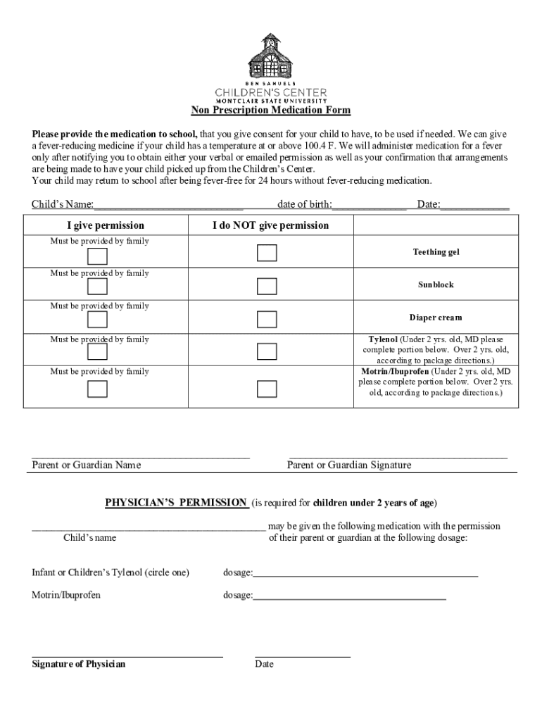 Get the free Non Prescription Medication Form