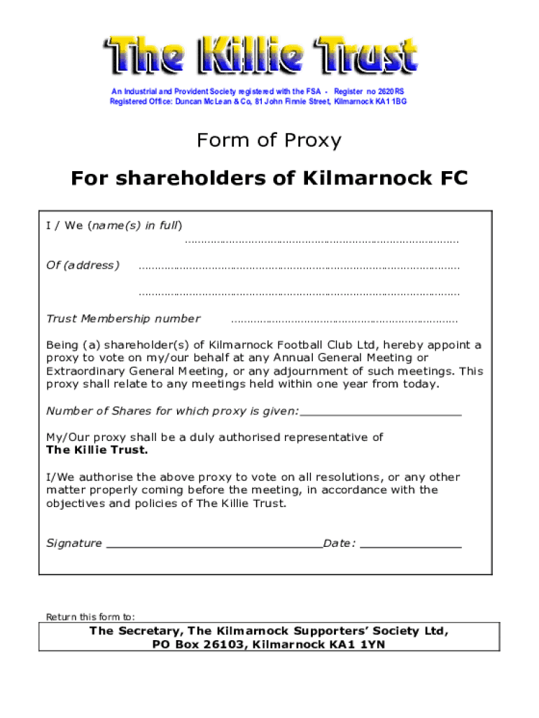 Get the free Document1. Kilmarnock FC Form of Proxy