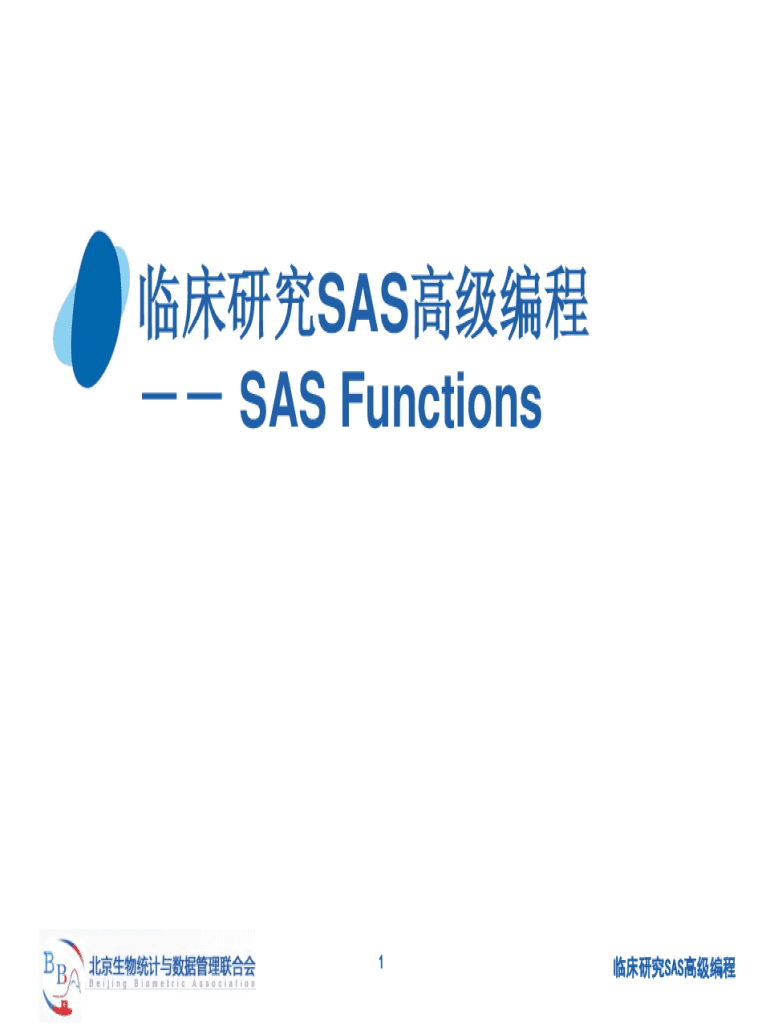 SAS Functions1SASContentsCharacter Numeric Date and time Statistics Probability Others2SASCharacter Contents Introduction to working with character variables Input SAS data set for examples Identifying