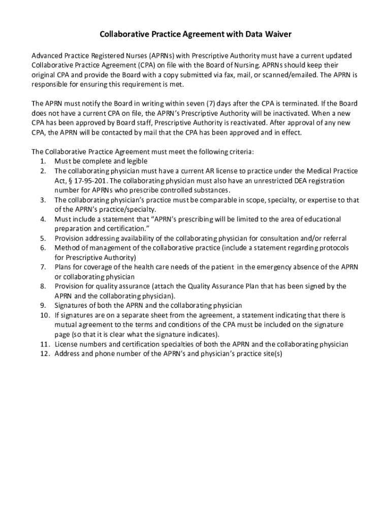 Collaborative Practice Agreement with Data Waiver