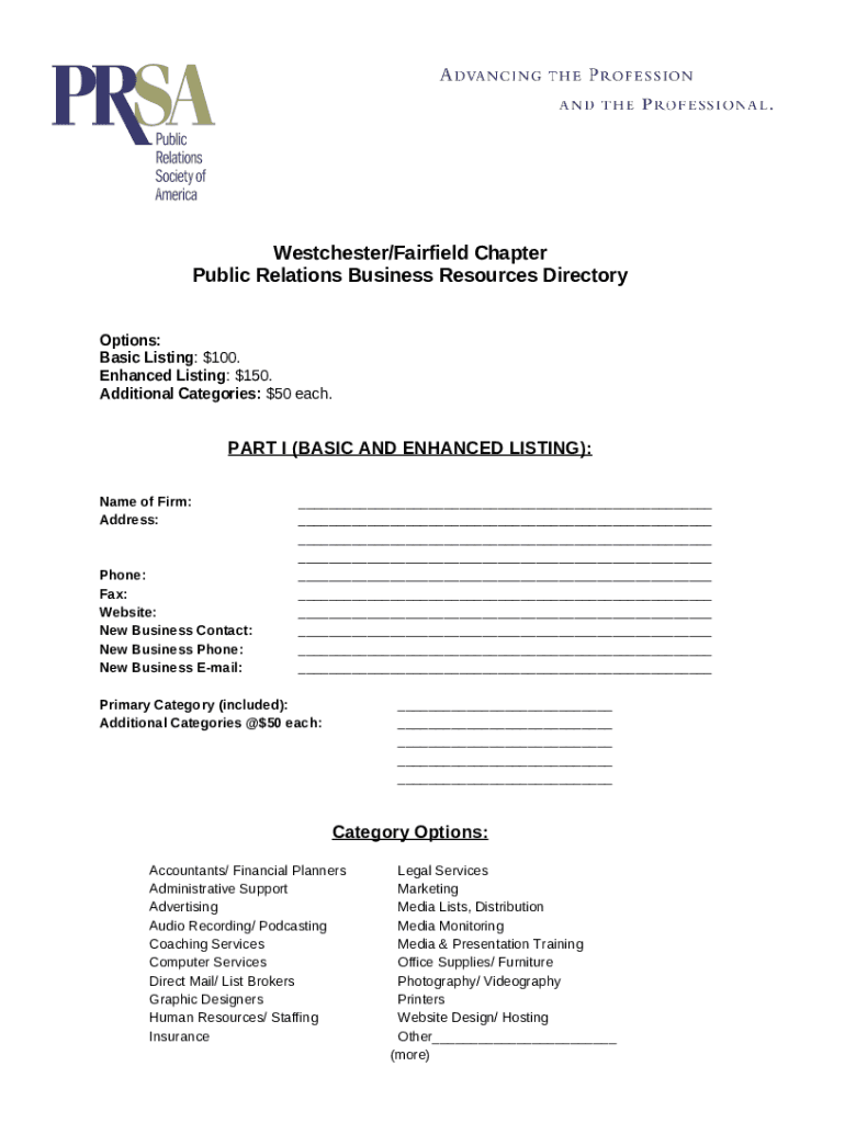 PRSA-WF Business Resources Directory word template: frequently asked questions