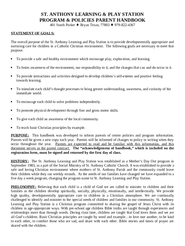 Instructions for the ANTHONY LEARNING & PLAY STATION form
