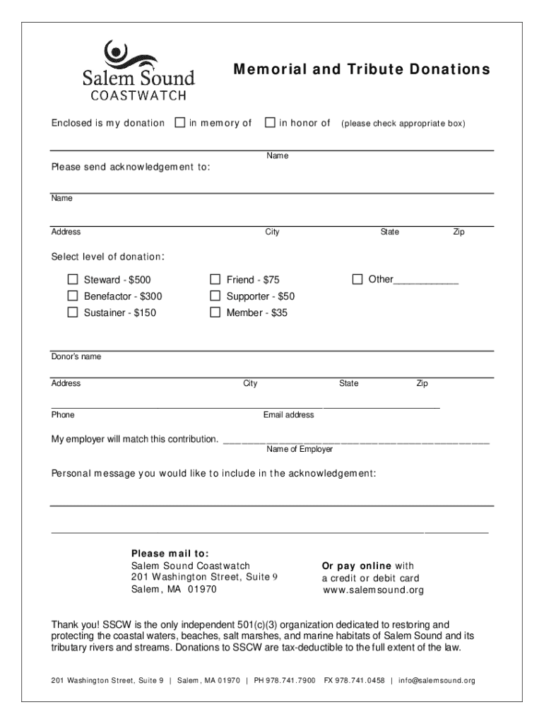 Fill out your memorial-tribute donations form mail-in online with pdfFiller!