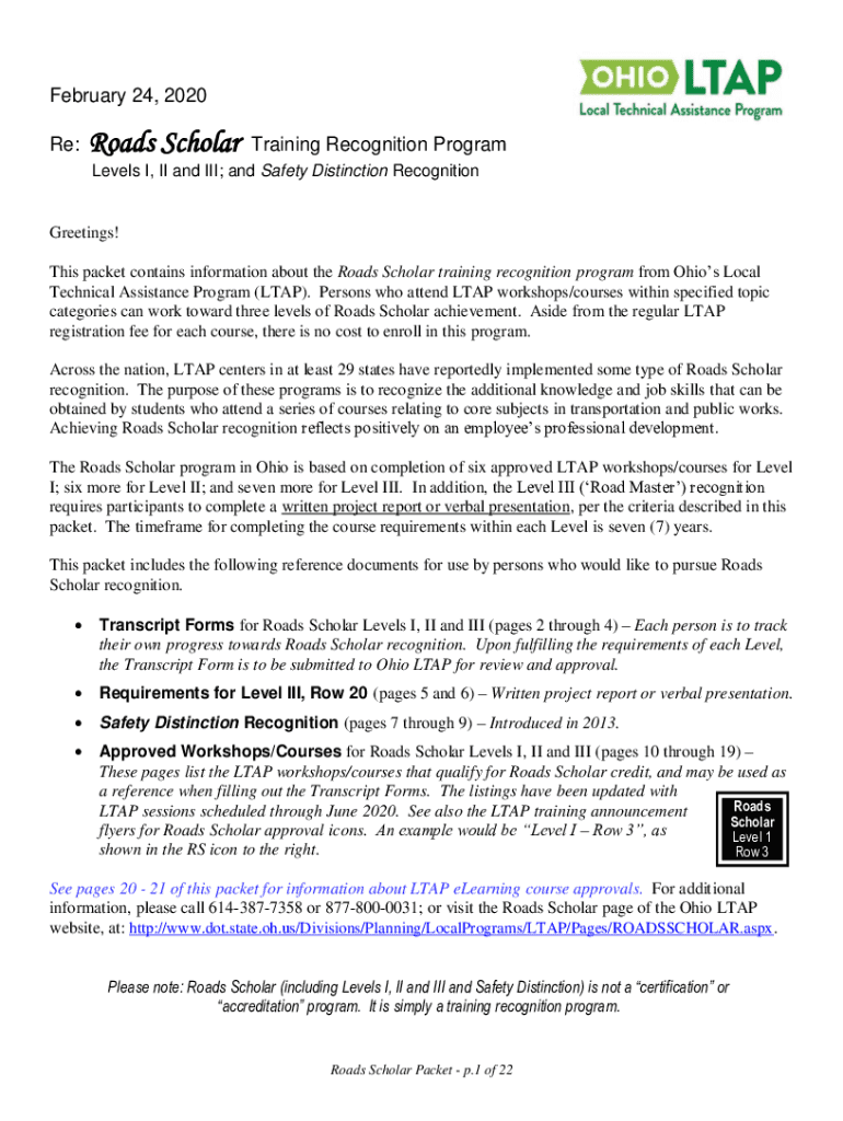 Get the free February 24, 2020 Re: Roads Scholar Training Recognition Program