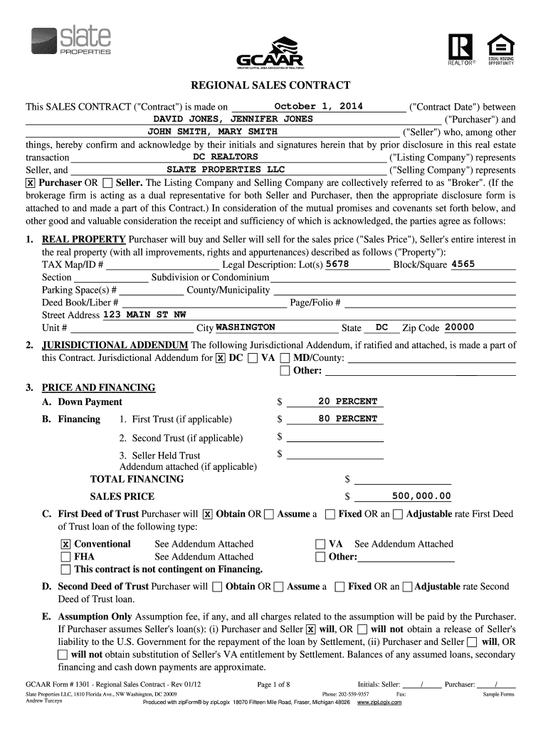 The Regional Sales Contract is a real estate document used by purchasers and sellers in Washington DC to formalize the sale of residential property.