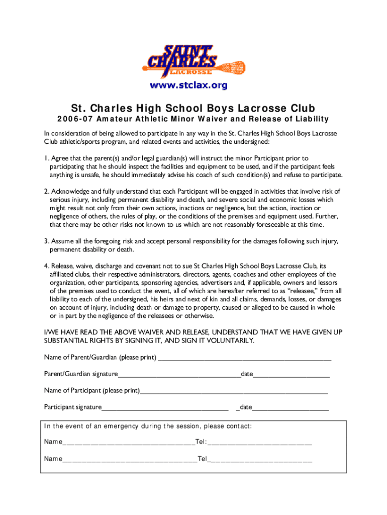 In consideration of being allowed to participate in any way in the St. Charles High School