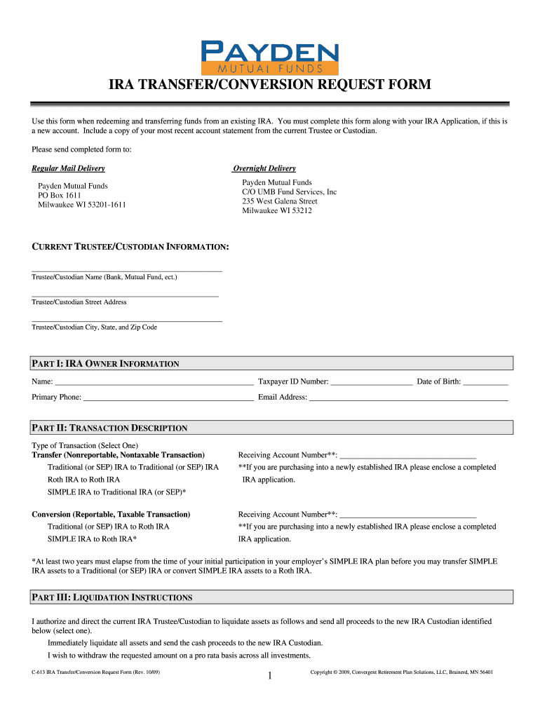 Submission Methods and Delivery for the IRA Transfer/Conversion Request Form