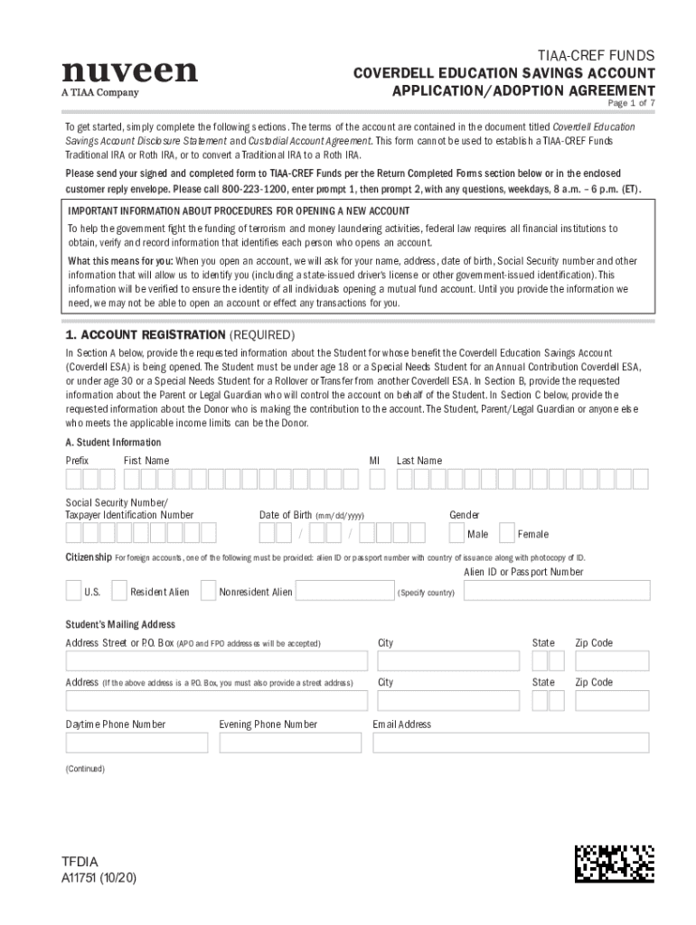 To fill out a11751 TIAA-CREF Funds Coverdell, follow these steps: