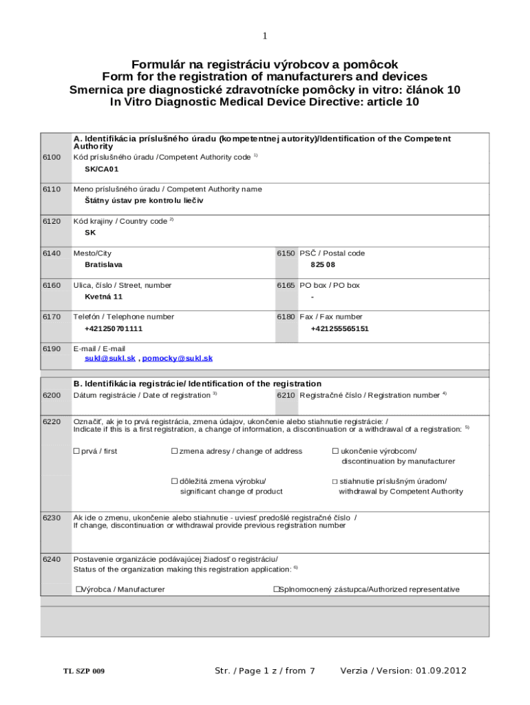 Template ulr na registrciu vrobcov a pomcok / for the registration of manufacturers and devices instructions