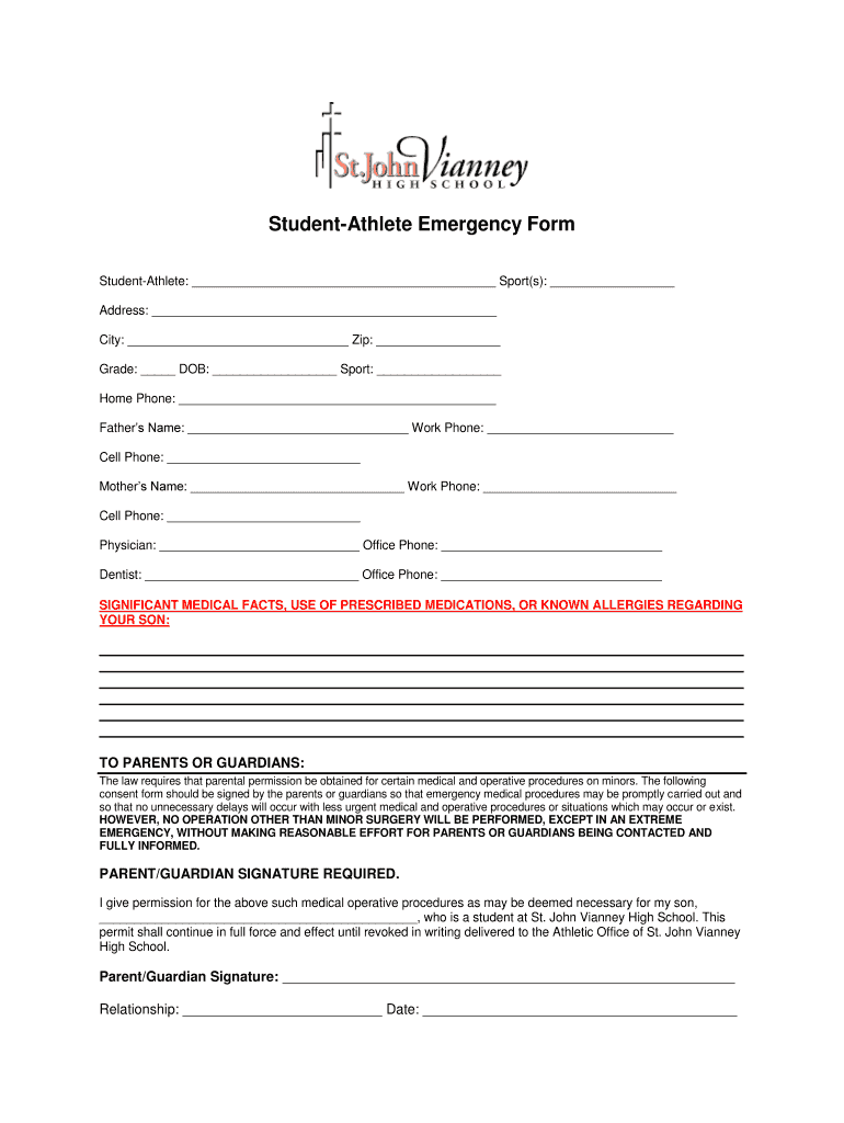 Get the free Student-Athlete Emergency Form