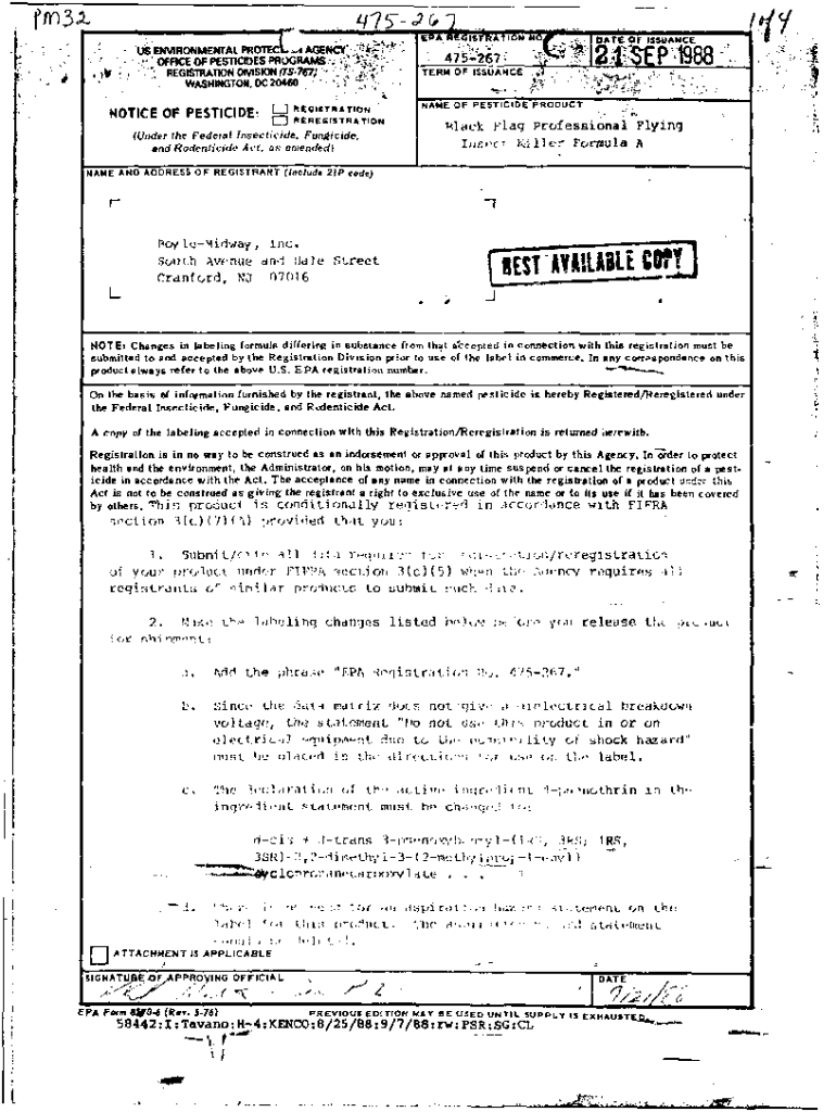 F FY) 'RI., 'us G's. , ... OfFlCOFPESTICIDESPROGRAMS, J ';:i; ', J t. “.: REG767;: :. '.!:., 'TERN OF40o choice OF PESTICIDE:ISS:.CE, ', '., ;:, TJ., ; “., “:. ', .ODT:)r Boy girl 'Nay, Inc.