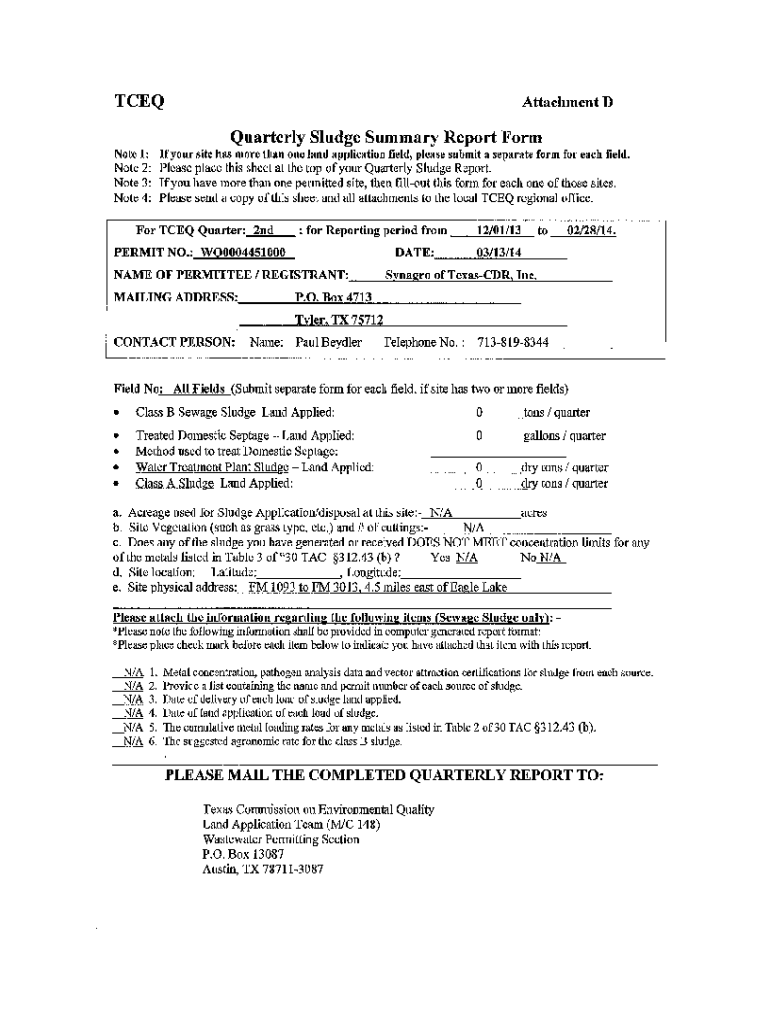 How to fill out tceq quarterly sludge summary
