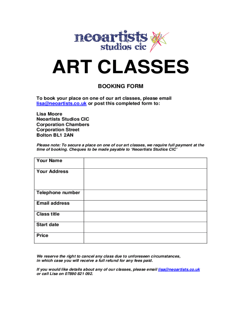 How to fill out art class booking formdoc