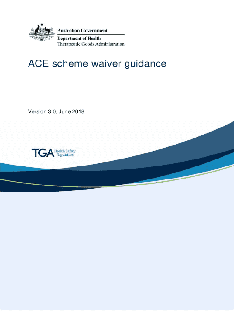 ACE scheme waiver guidanceVersion 3.0, June 2018Therapeutic Goods AdministrationCopyright Commonwealth of Australia 2018 This work is copyright. You may reproduce the whole or part of this work in