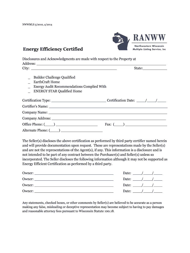 Get the free Energy Efficiency Certification Disclosure Form