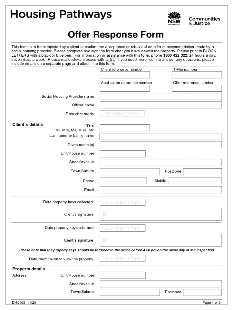 This form is to be completed by a client to confirm the acceptance or refusal of an offer of accommodation made by a