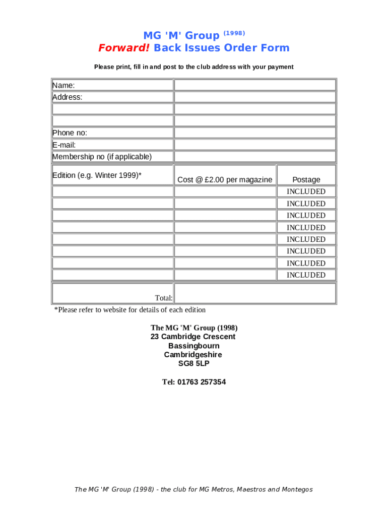 What is Back Issues Order Form?