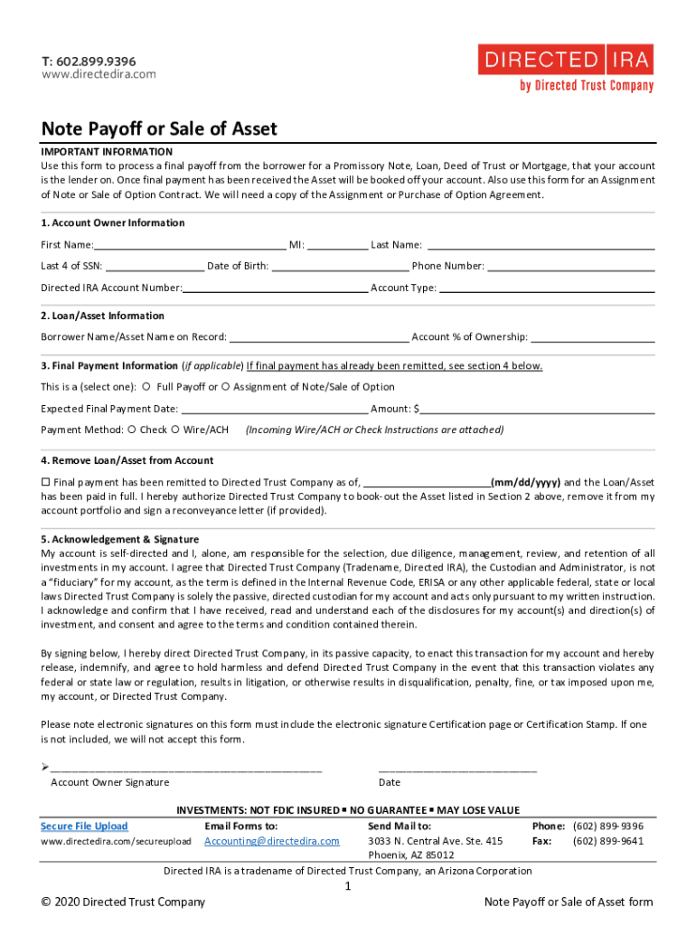 Get the free Note Payoff or Sale of Asset - Self-Direct your IRA