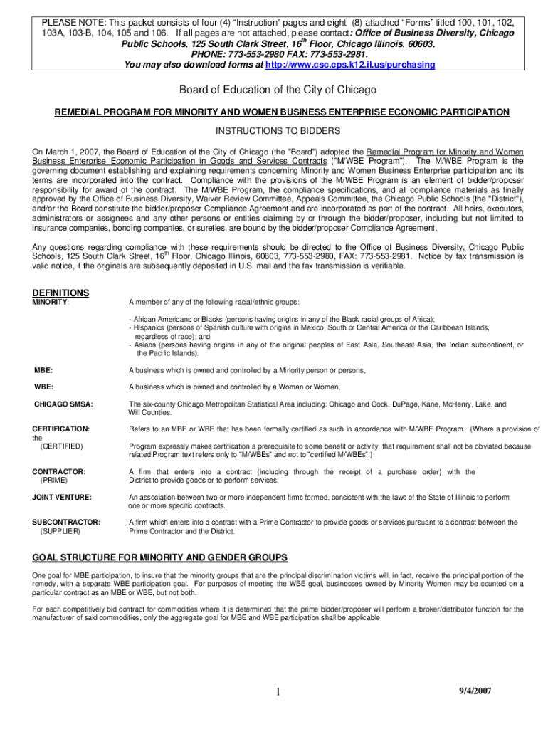 PLEASE NOTE: This packet consists of four (4) Instruction pages and eight (8) attached Forms titled 100, 101, 102,