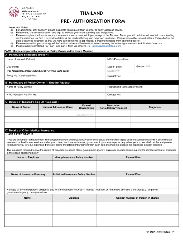 PRE AUTHORIZATION FORM