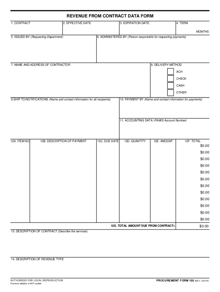 Get the free REVENUE FROM CONTRACT DATA FORM