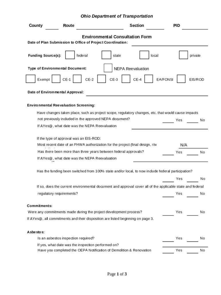 How to fill Environmental Consultation - Ohio Department of ... word template