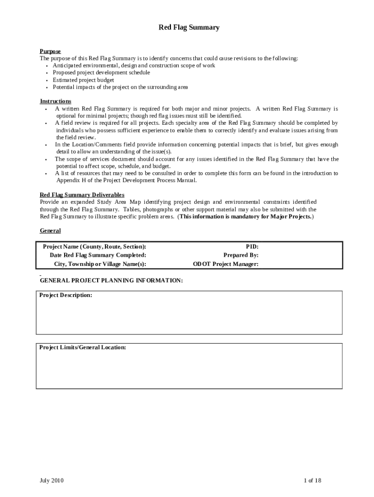 Template RED FLAG SUMMARY - Ohio Department of Transportation instructions