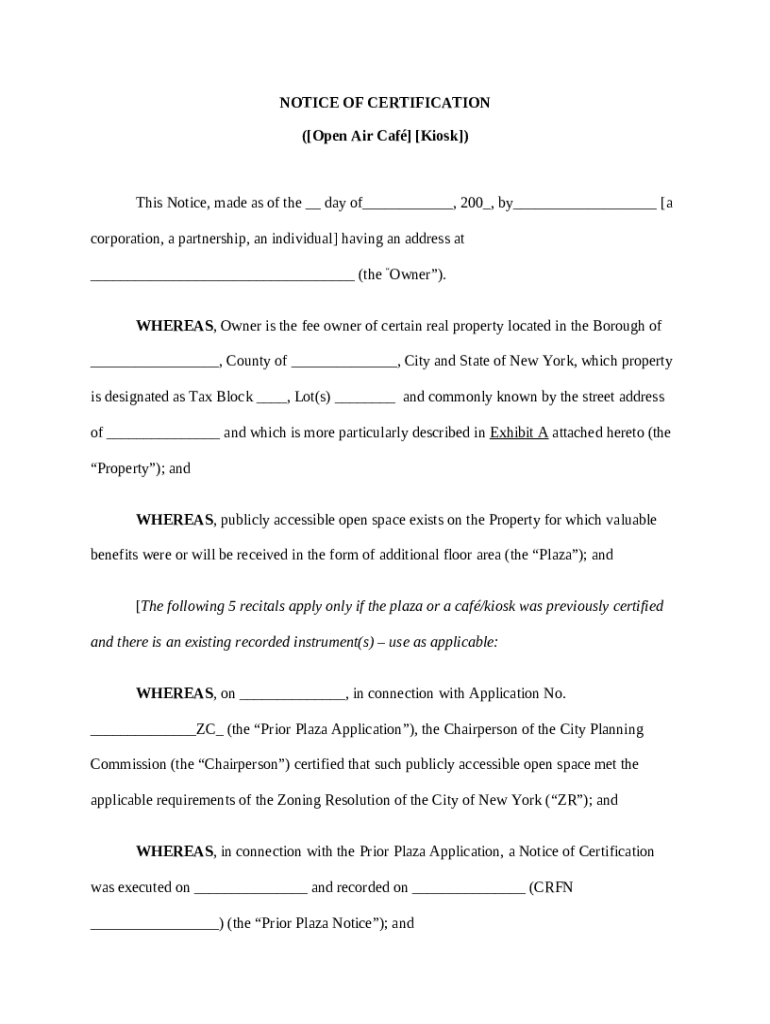 What is NOTICE OF CERTIFICATION - New York City Form?