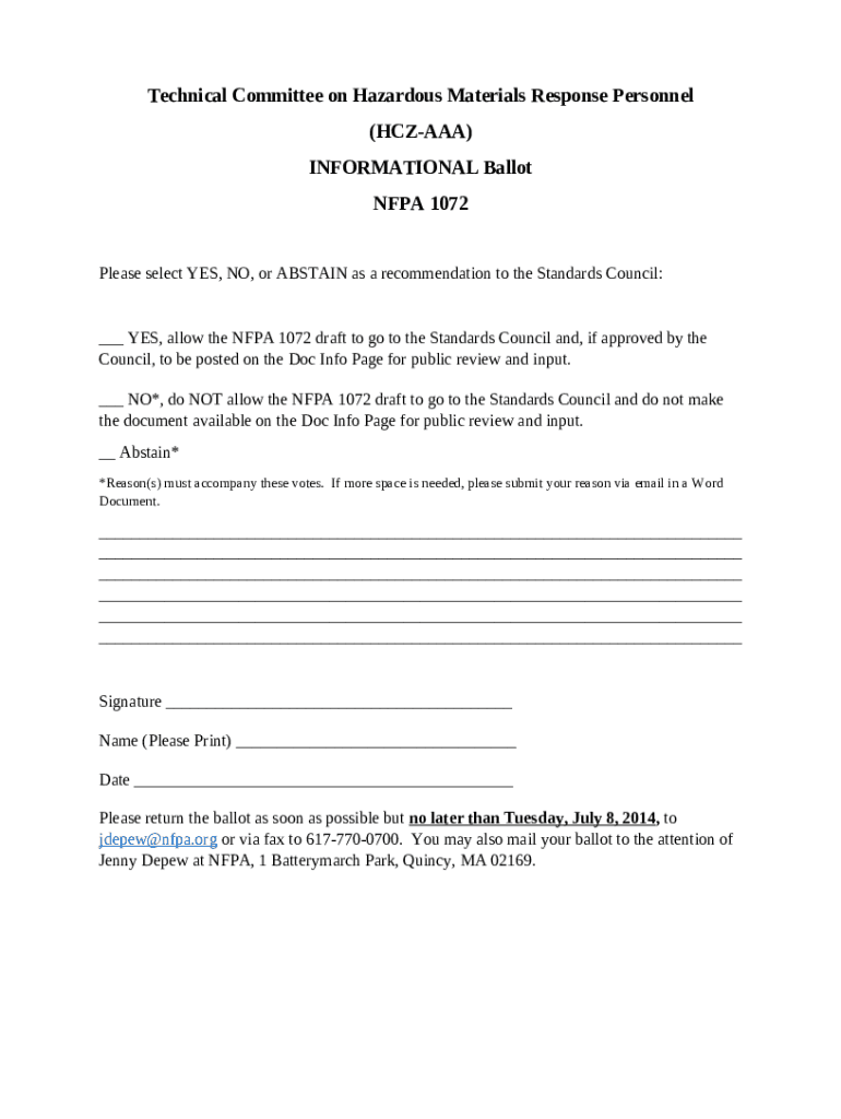 How to fill out Technical Committee for Hazardous Materials ... - NFPA