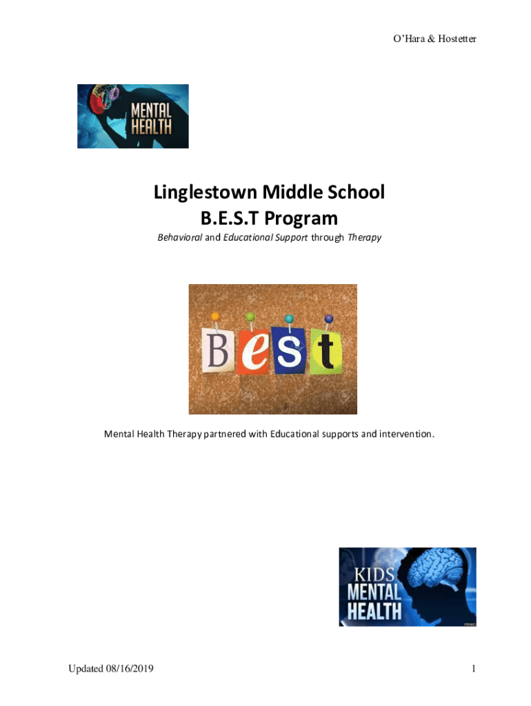 Hara & HostetterLinglestown Middle School B.E.S.T Program Behavioral and Educational Support through TherapyMental Health Therapy partnered with Educational supports and intervention. Updated 08/16/20191OHara