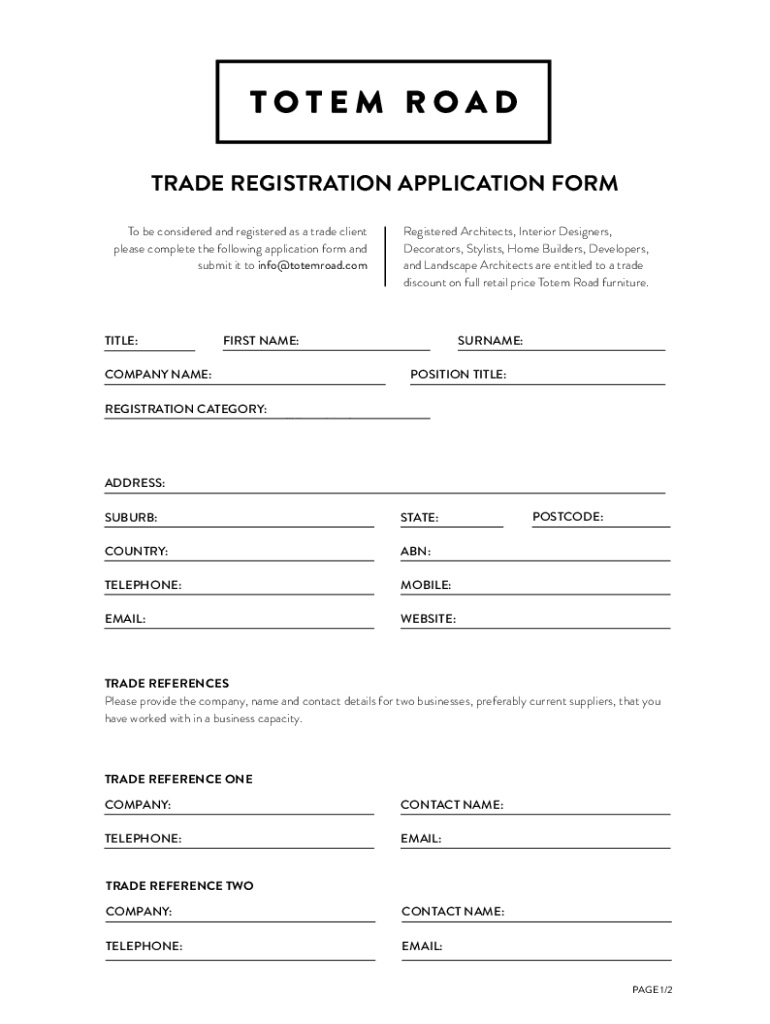 TRADE REGISTRATION APPLICATION FORM