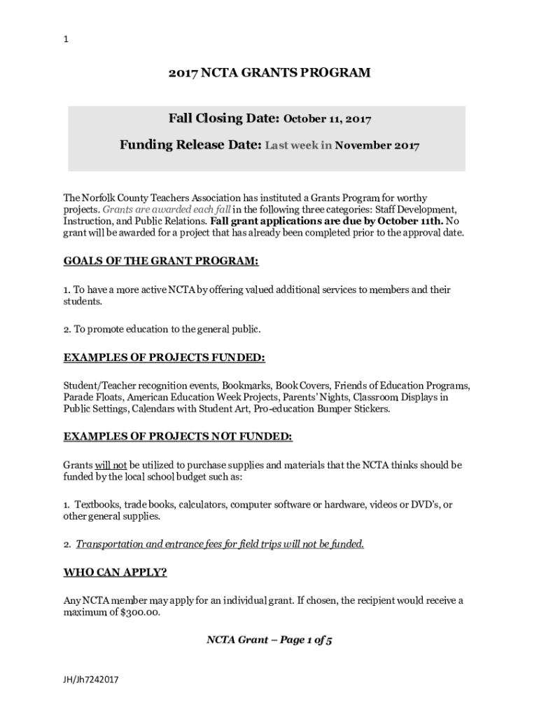 2017 Ncta Grants Program is not the form you're looking for?Search for another form here.