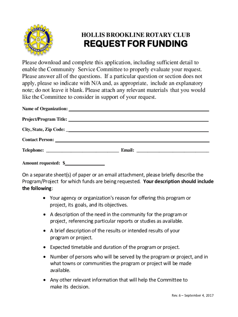 Get the free HOLLIS BROOKLINE ROTARY CLUB REQUEST FOR FUNDING