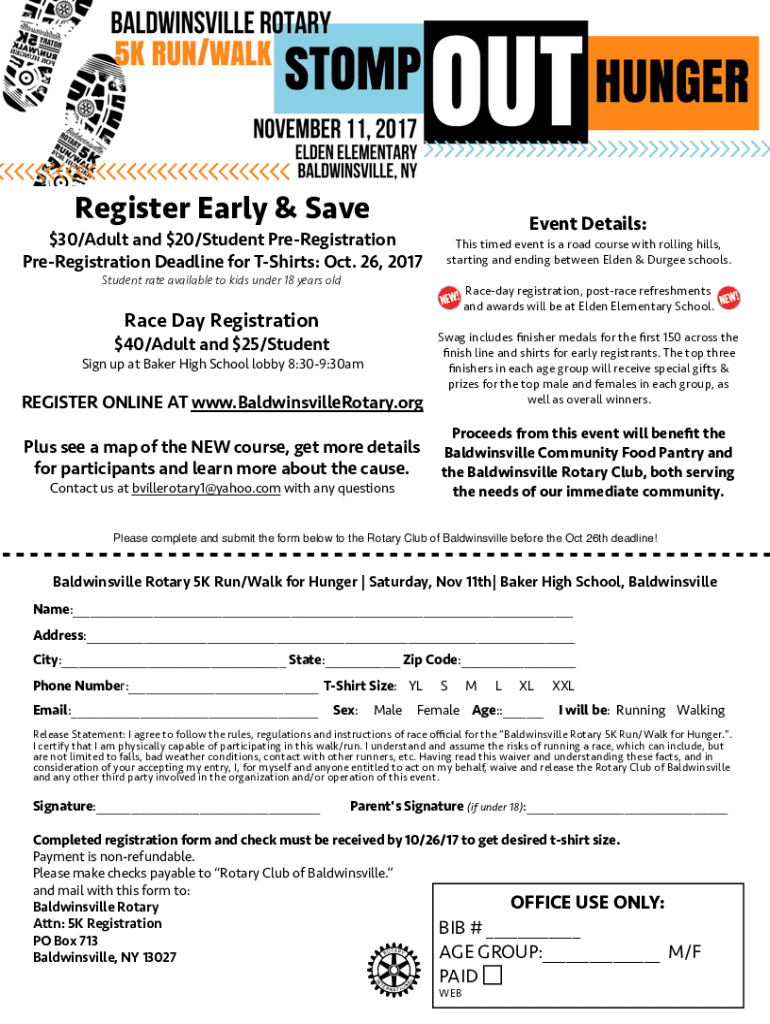 Register Early & Save $30/Adult and $20/Student Preregistration Deadline for Shirts: Oct. 26, 2017Event Details: This timed event is a road course with rolling hills, starting and ending between Elder