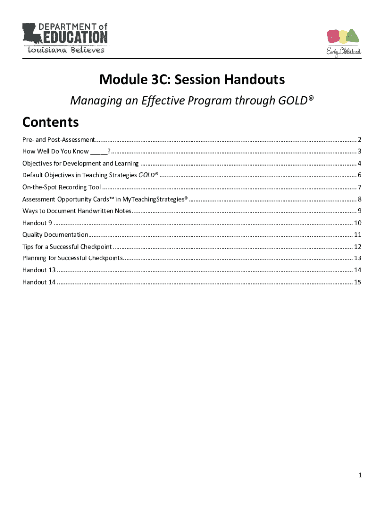 Module 3C: Session Handouts Managing an Effective Program through Malcontents PRE and Pre-assessment.......................................................................................................................................................